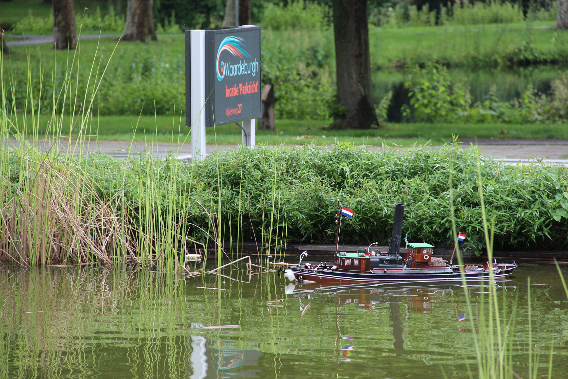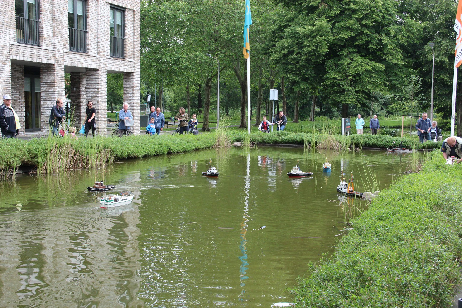 Zaterdag 15 juni was het weer zover. Onze jaarlijkse vaardemo bij verzorgingshuis Parkzicht in Sliedrecht. Dit jaar waren we daar alweer voor de 11e keer aanwezig met veel van onze scheepsmodellen. De afspraak hiervoor was vorig jaar direct na onze demo al gemaakt (onder voorbehoud van de vijver). Dit gegeven is al 11 jaar hetzelfde, zolang is er al sprake van dat de vijver weg moet maar zolang deze er is komen we jaarlijks terug. Zolang de bewoners ervan genieten en wij als vaarders ook houden we het erin. Met het weer begon het niet zo heel erg goed maar in de loop van de dag knapte het op en zo konden we in een lekker zonnetje onze modellen weer laten varen. Wel is er een heel klein buitje geweest maar de meesten bleven gewoon doorvaren. Afspraak was dat we om 14.00 uur zouden starten en om 16.30 zouden eindigen. Ruim voor 14.00 uur lagen de 1e schepen al te water en zo is er tot 16.30 uur gevaren. We waren amper begonnen met varen en toen kwam de 'koffie kar' al langs met koffie, thee en de beroemde tompoezen. Hier werd gretig gebruik van gemaakt en tijdens het 'naar binnen werken' van deze versnapering lagen diverse schepen even stil, tja hoe moet je dat anders doen dan met 2 handjes... Later op de middag kwamen ze nog rond met een glaasje fris en ook werden zoutjes uitgedeeld. De verzorging bij Parkzicht is altijd erg goed (Joke bedankt). Rond de vijver zaten veel bewoners te kijken en doordat er een stukje in de krant had gestaan kwamen er ook nog bezoekers van buitenaf, al met al behoorlijk druk met kijkers. Veel bewoners hadden het erg naar hun zin want zij bleven de heel demo lekker in het zonnetje zitten kijken. Ook de vaarders hadden het goed naar hun zin en op hier en daar een kleine storing na is het allemaal goed verlopen. Om 16.30 uur gestopt en met een paar man even geholpen met opruimen. Heb je iets gemist na het lezen van dit stukje?? Zet dan zaterdag 13 juni 2020 alvast in je agenda, dan kan je het niet vergeten.
